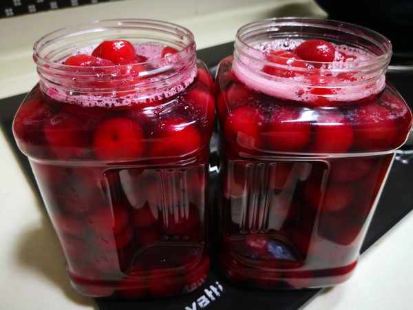 做好的大櫻桃罐頭內加入2大勺蜂蜜,涼透之後就可以食用瞭,吃不完的大櫻桃罐頭裝到無水無油的塑料瓶裡放到冰箱冷凍區冷凍,想吃的時候化開,隨吃隨取特方便,一年都能吃到大櫻桃。這裡需要註意,不要用玻璃瓶子冷凍,以免炸裂。