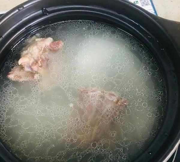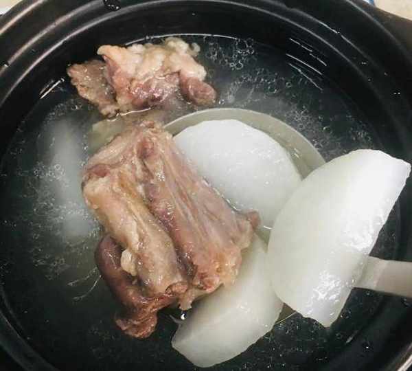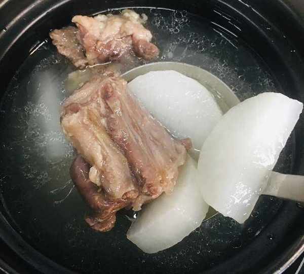 第4步、加入焯過水的白蘿卜,燉至蘿卜軟爛,調入鹽和雞精。