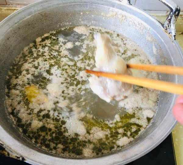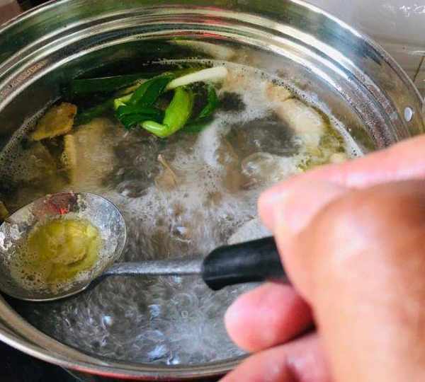 第6步、撇去浮沫、雞油,小火慢燉兩小時左右。