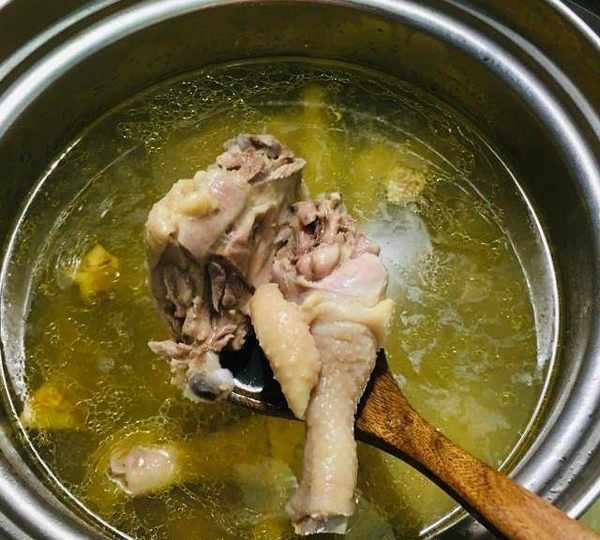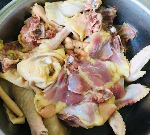 1.燒幹凈浮毛,摳去胸肺。2.沖洗,焯水,再沖洗。3.撇凈雞油,小火慢燉。
