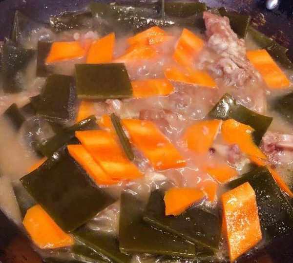 第8步、海帶燉至微軟放入胡蘿卜片改中火燉五分鐘。
