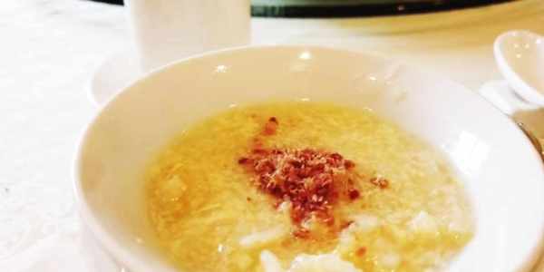 金華火腿切碎過油炸香撈出控油,撒放在魚肚桂花湯中即可