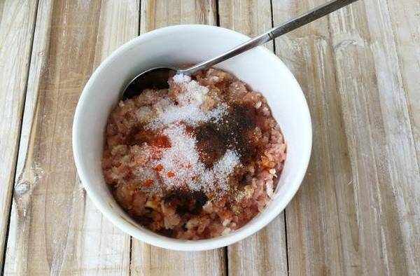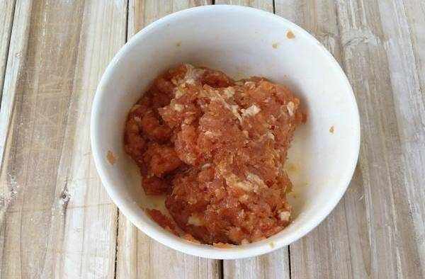 3.豬肉末與調味料搞拌至均勻有彈性,放冰箱內冷藏30分鐘(還能用個更加省事的方法,在剁肉時把調味料混在肉裡一起剁,肉同樣很有彈性)