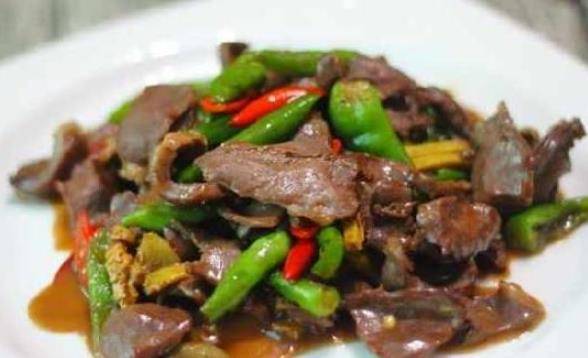 豬心醃制好瞭之後,鍋中放入適量的油,等到油燒瞭之後再放入一點豬油,待豬油融化放入豬心翻炒,炒制豬心變色盛出,鍋中留少許的油,把辣椒,薑蒜,豆幹炒香之後再放入豬心,然後翻炒均勻放入些許醬油,鹽,味精翻炒至豬心變硬就可以出鍋瞭。