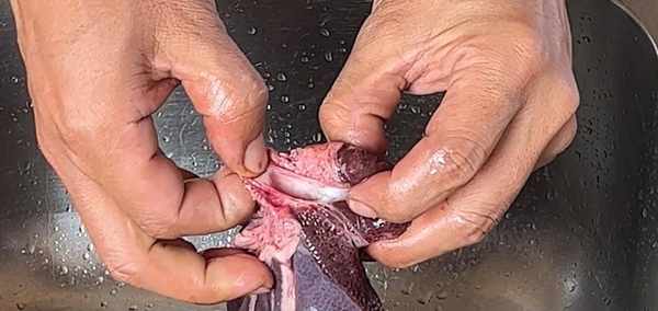 1.準備一個豬肝,找到大血管,往裡面灌水。不完整的話就放入清水中加點鹽浸泡20分鐘以上。