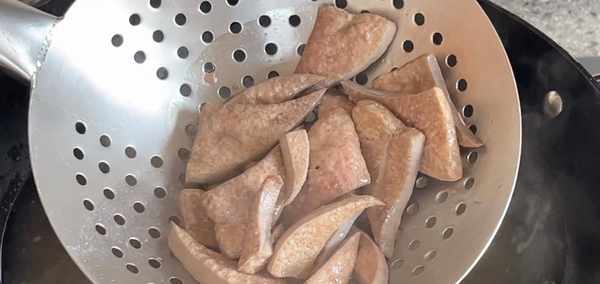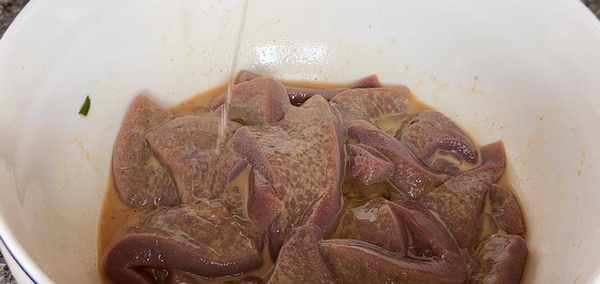 豬肝很多朋友買回來就隻是用水沖洗下,然後切片直接炒,或者是加點配料醃制一會再炒。其實剛買回來的豬肝,尤其是整塊的,它有一個大血管,往裡面灌水,多灌幾次,它的腥味會大大減少。因為一大部分腥味都來自它內部不能發散的血沫。切散的豬肝可以放入清水中浸泡,泡出血水,也能大大減少血腥味。這次要做的豬肝外香裡嫩,吃著一點都不腥,不喜歡吃的朋友也能多吃幾口,真的太好吃瞭。