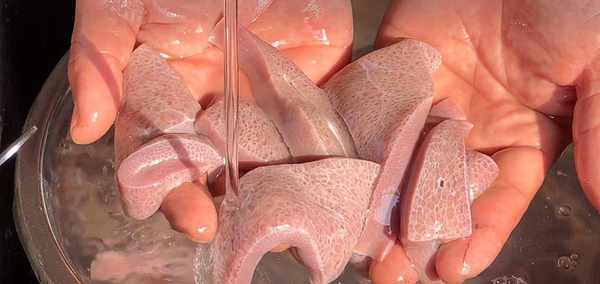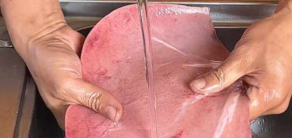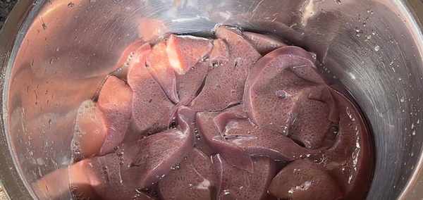 2.灌瞭水之後的豬肝就是這個樣子的。