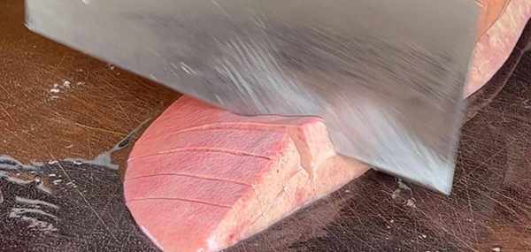 3.對半切開,再切成寬度為1厘米左右的厚片。
