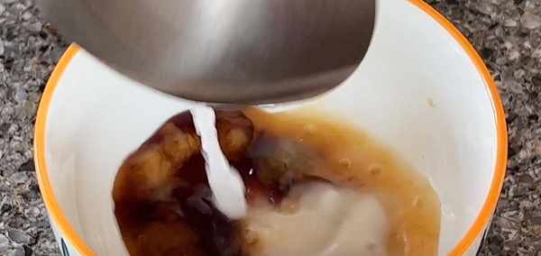 9.調個碗汁:碗中加入適量鹽,2勺生抽,一勺蠔油,適量淀粉水。攪拌均勻備用。