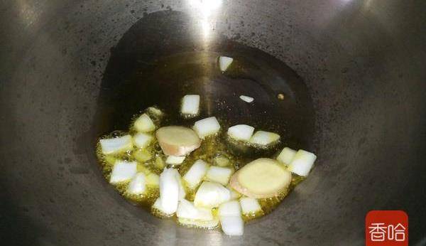 6.熱鍋下油,油八成熱下洋蔥和薑爆香