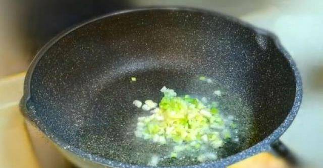 4.鍋中倒入適量食用油,油熱後下入蔥薑蒜末爆香。