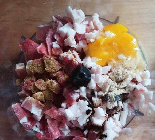 第1步、豬五花肉(肥瘦比3:7)250克,加入適量的十三香,白胡椒粉,老抽攪拌成細膩肉餡。(原圖找不見瞭,這是做豬肉白蘿卜餃子時加瞭個生雞蛋,做白菜餃子不要加,白菜易出水,肉餡先不要太水)。