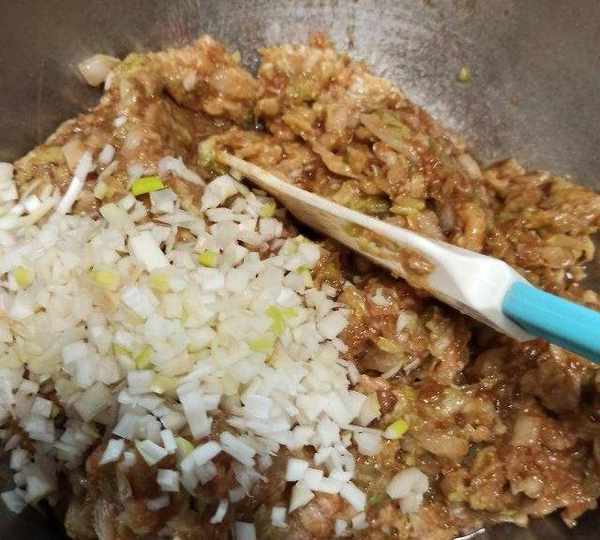 第6步、準備開包前加入適量的鹽和大蔥末拌均勻。