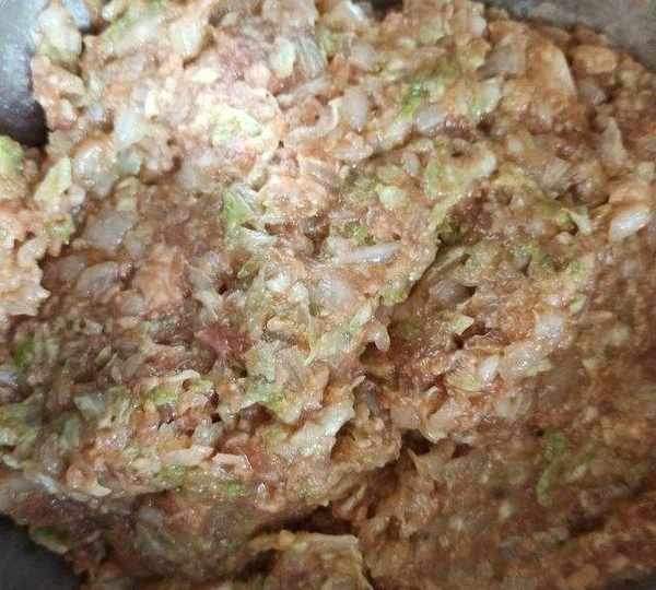 第7步、拌好的肉餡呈抱團狀。
