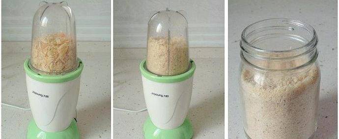 超市買的咸味蝦皮,稍清洗後暴曬幹,放料理機裡打碎成粉狀,然後裝玻璃瓶中密封存放,隨用隨取。蝦皮一定要曬幹再打,不然悶在瓶中有可能會捂變味。曬前也不要過度清洗,以防洗碎。