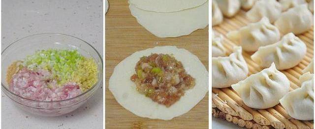 餃子餡料:梅花豬肉400克,大蔥100克,薑半塊,蝦皮粉1勺,蠔油2勺,生抽3大勺,清水3大勺。