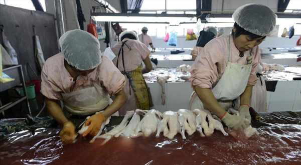 這種白條鴨在養殖場會打不少的生長激素,不僅生長速度很快,而且全程吃飼料,見不到草和其他的原生態食物,飼養成本低,周期短,價格自然就比普通的番鴨麻鴨要便宜。