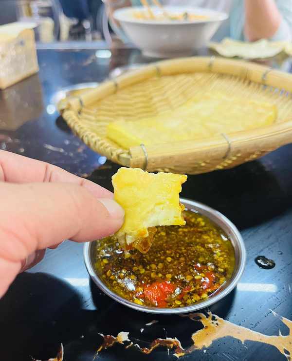 蘸上這小米辣,幹辣椒和蒜油一起調制的蘸水,絕對是那種可以吃出肉味的豆腐,當然不誇張的說,比吃肉還好吃!
