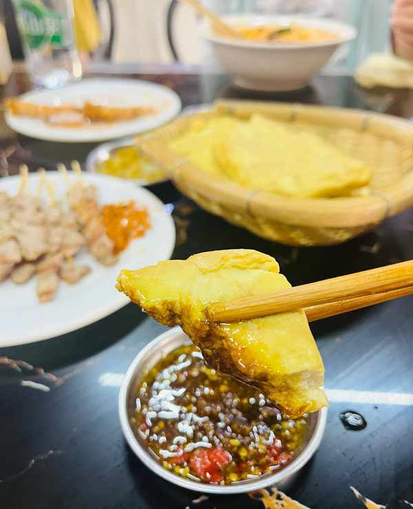烤好的豆腐,快速來到餐桌(有條件直接圍著燒烤架,邊烤邊吃最是享受),配合最受歡迎的蒜油蘸水,亦或是小米辣醬油蘸水,那是絕配!