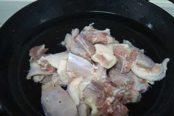 3.先把鴨肉冷水下鍋,焯水後撈起再用流動水沖洗乾淨後撈起瀝幹水分。