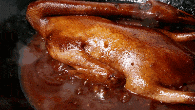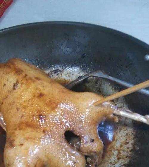 鵝燜瞭40分鐘完全熟後,如果鍋中還剩有較多的湯汁,這時候可以大火收汁,把湯汁收至濃稠,在收汁的過程中要翻動鵝,這樣可以使鵝更好的上色,制作好後把鵝取出,然後砍件裝盤即可,鍋中剩下的汁水把渣渣去掉,然後把鍋中剩下的汁水澆淋在砍好的鵝肉表面即可,這樣一道美味的五味鵝就制作完成。