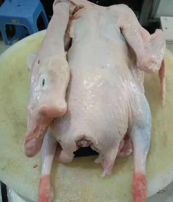 新鮮的鵝宰殺幹凈,把鵝內部的內臟全部去除,把鵝身上的血水清洗幹凈備用。