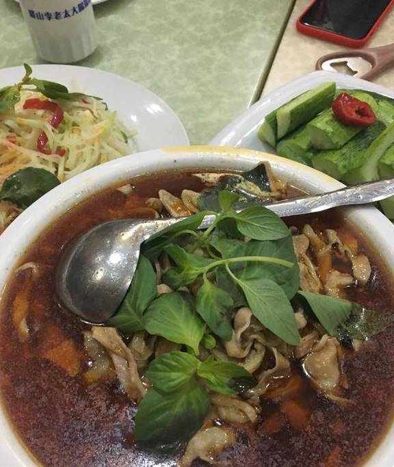 陪同我們的導遊說,很多老羅山人一天隻吃兩頓,一早一晚,都是大腸湯,一天的營養足夠瞭。