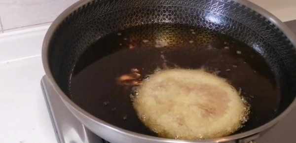 1、起鍋,鍋中燒油,將包好的盒子輕輕壓扁,厚度在1.5~2厘米左右,可以看到皮薄透明但也不會破。油溫升到,一個筷子放進去,周圍冒小泡,即四五成熱時,就可以下入盒子。下入後,要用筷子輕輕推動,避免它粘鍋。