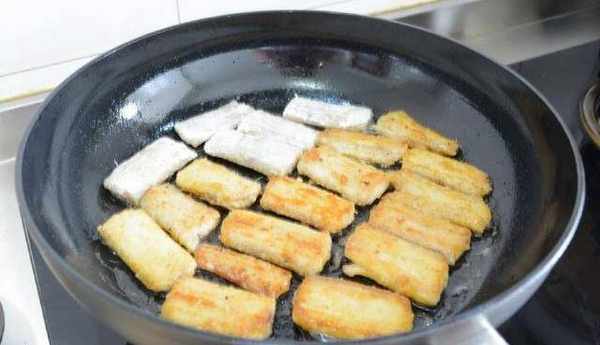 五、之後以配料過一遍油,是因為被煎炸過的油,煎出來的魚不會粘鍋也不會破皮,在煎魚的過程中不要經常的去翻動魚,待魚兩面金黃之後就可以出鍋瞭。