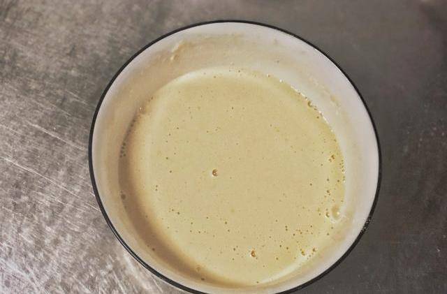 清水少量多次得慢慢加進去,不斷攪勻,細膩的面糊就制作完成瞭。