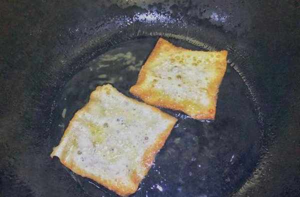 傢庭版的制作起來也不要那麼繁瑣,餜箅就用餛燉皮兒來代替。把餛燉皮兒搟薄一些,油熱之後下鍋炸至兩面金黃就可以。