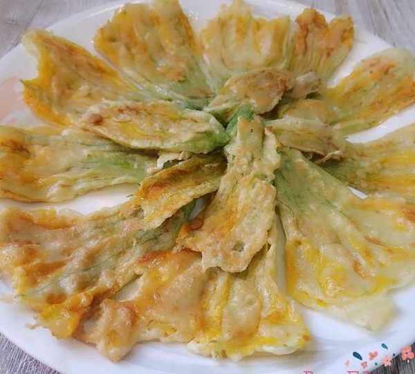 原料:南瓜花、面粉、雞蛋、水、鹽、雞粉、油。