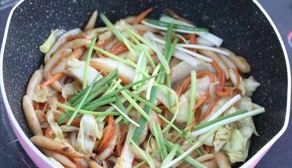 8加入小蔥段,翻炒均勻即可盛盤。