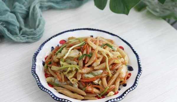 大多數人做炒面喜歡用掛面或是面餅,但我傢的炒面有點不一樣,不是細長的面條,而是胖嘟嘟的剪刀面——面粉加水揉成團,用剪刀咔咔幾下,剪成魚魚似的小條,煮熟後再與配菜一起翻炒,剪刀面口感勁道,時蔬清新爽口,這樣的炒面擺盤可可愛愛,健康又美味,小朋友很喜歡,時常作為營養早餐出現在餐桌上。今天就來分享一下這款時蔬炒剪刀面的傢常做法。