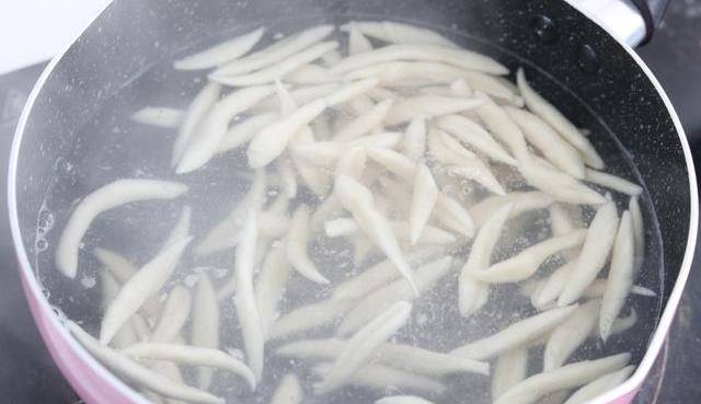4湯鍋的水煮沸,放入剪刀面,熟透後撈出備用。