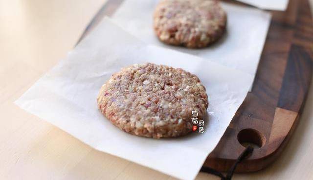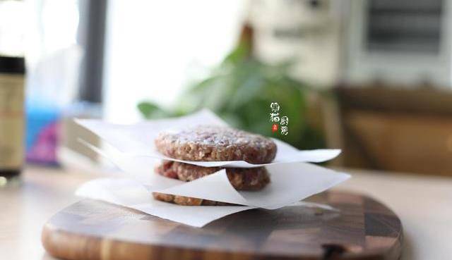5.取一張油紙或者保鮮膜,把肉餅輕輕按壓平後,就成瞭一個個的牛肉餅。