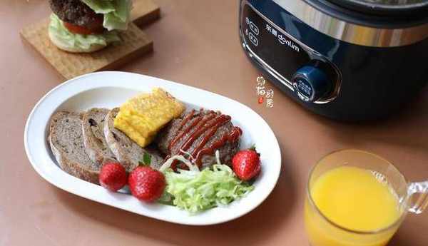 牛肉餅煎好,可以給自己做一份營養早餐,配上簡單、全麥面包和蔬菜以及適量的水果。做早餐要想早上不手忙腳亂,晚上提前做好準備,第二天做早餐很輕松。