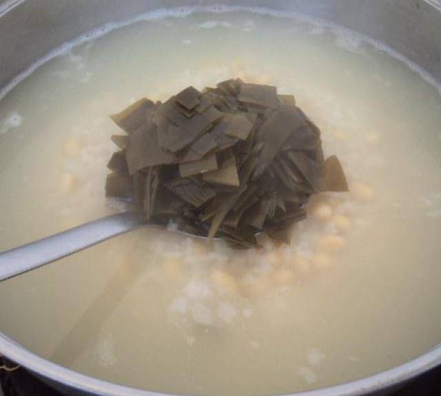 海帶與黃豆搭配炒菜是很經典的養生一道菜,這次用這兩種食材搭配煮粥,粘稠的粥中豆香混合著海帶的清香,口感、味道都很不錯。
