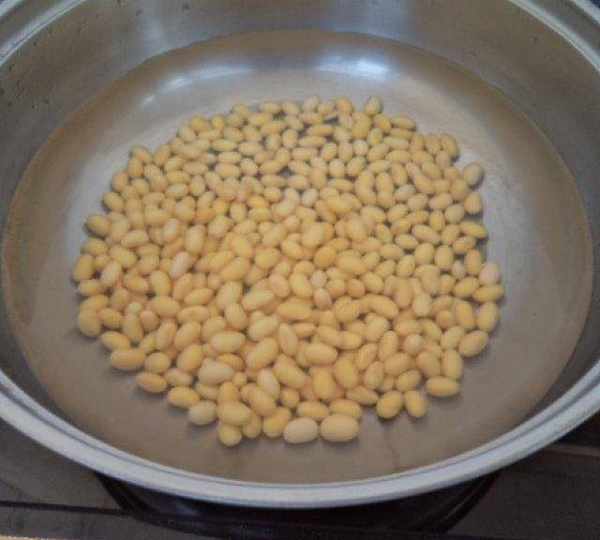 第1步、黃豆洗幹凈用冷水浸泡60分鐘。