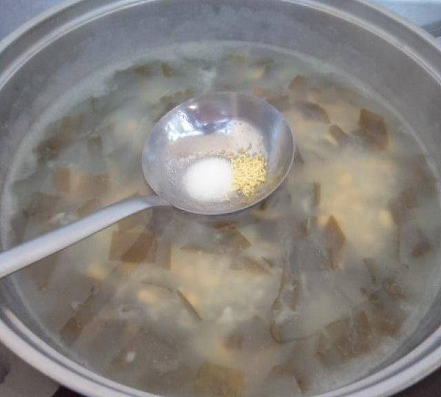 第7步、20分鐘後海帶入鍋同煮,其間還要適時攪動。