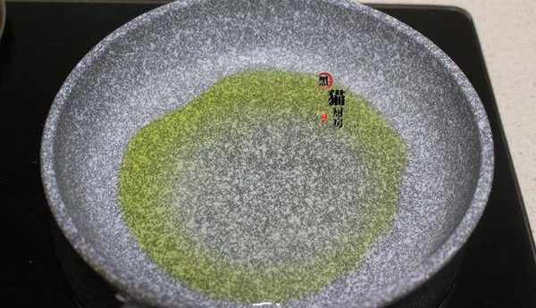 6.平底不粘鍋加熱,我建議早餐可以健康一點,倒入少許橄欖油,因為橄欖油含有不飽和脂肪酸,早餐適當攝取橄欖用油,對身體是非常有好處的。