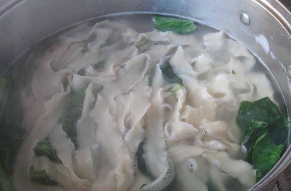 16.先把燴面用開水煮至八成熟,也可以直接煮熟澆上茄汁排骨,但煮八成熟再放入茄汁裡煮1--2分鐘會更好吃。我忘記拍最後一個茄汁裡煮的圖片瞭,就文字說明瞭。