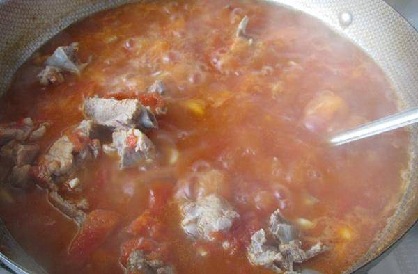 排骨1500G、西紅柿700克、面粉300克、番茄醬50克、八角2個、花椒15粒、薑20克、桂皮2段、精鹽10克、胡椒粉2克、蒜末適量