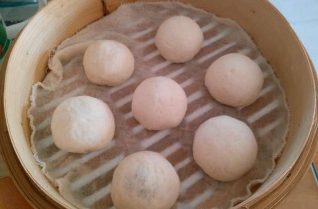 3.取一個劑子,用搟面杖搟成中間厚,四周薄的圓形,包入豆沙餡,整成圓形,收口朝下,放在鋪有濕屜佈的蒸籠裡。豆沙包之間要留有一定的距離。靜止十分鐘。大火燒開,蒸15分鐘左右,關火燜3分鐘後打開蓋子即可。