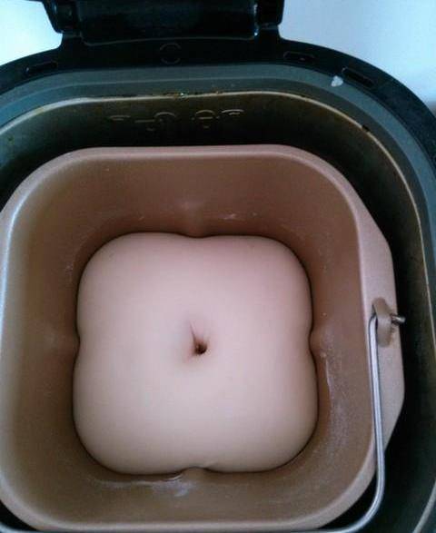 1.把所有材料加入面包機,揉面2個程序,然後蓋上面包機蓋,室溫發酵,大約30分鐘。我放冰箱瞭一個晚上,第二天早上起來回溫一下,這樣也可以做,正好。發到兩倍大,可以手指沾面粉,插一個洞,如果不回縮也不塌陷,就可以瞭。