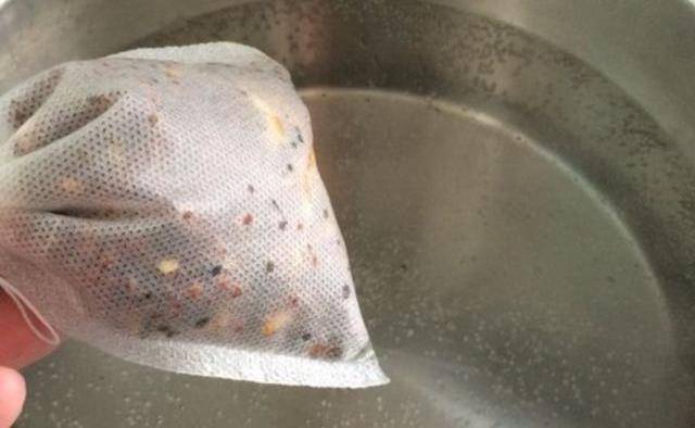 第二步:將花椒、八角、桂皮放入道香料包中紮緊口子;鍋中加入適量的清水,燒開之後將薑片放進去再次燒開。