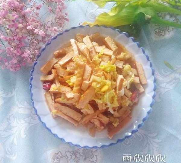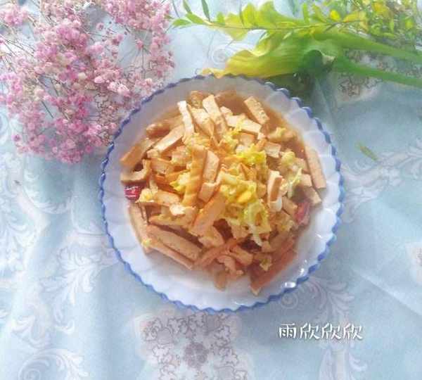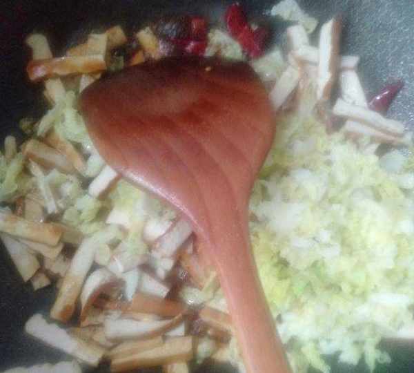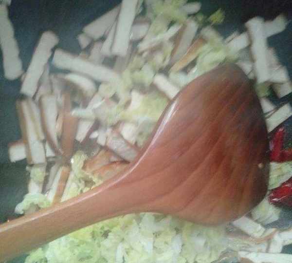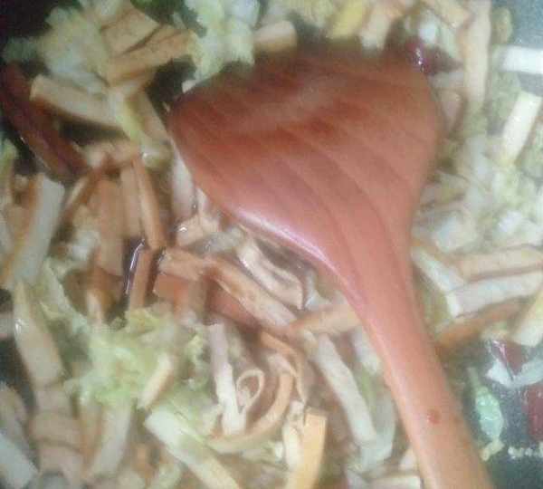 原料:豆幹、大白菜、大蒜、薑、幹辣椒、色拉油、白酒、鹽、生抽、醋、雞精。