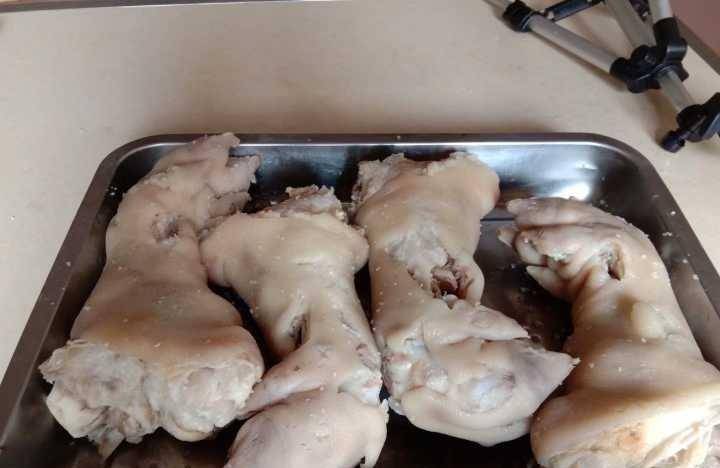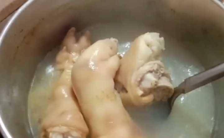 2起鍋燒水把焯過水洗幹凈的豬腳放鍋裡燉,(放適量鹽)燉到筷子可以輕松插入豬腳裡就可以撈出瀝幹水分