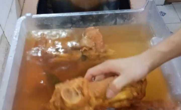 6炸好豬腳趁熱放下冰水浸泡一到兩小時