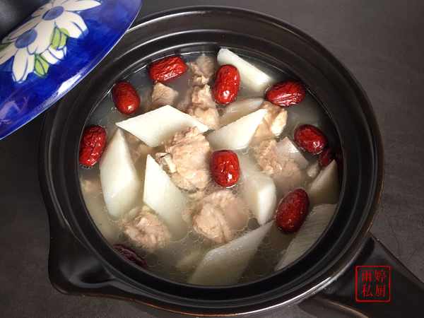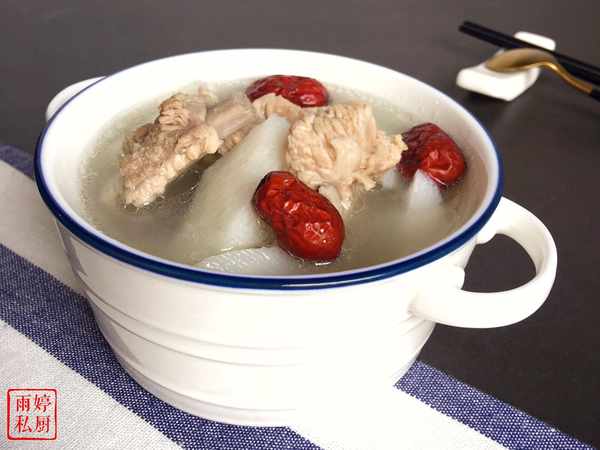 然後把焯過水的排骨放入砂鍋中,加入適量的清水煮40分鐘左右,然後加入山藥段繼續煮15分鐘左右,撒入少許鹽調味,最後加入紅棗煮5分鐘左右即可盛出。紅棗山藥排骨湯,葷素搭配,好喝又營養。